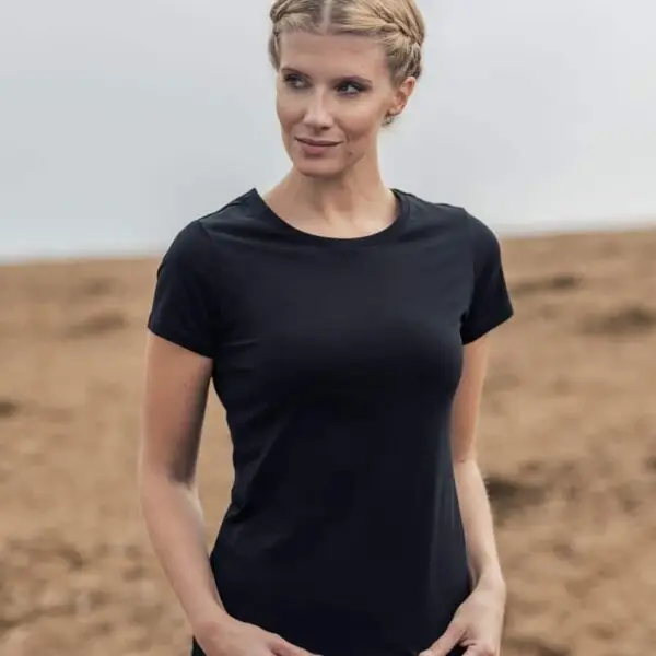 Priliehavý strih, dvojité švy na ramenách a okolo krku, bez štítku, možné prať na 60° a sušiť v sušičke, nežmolkujúce