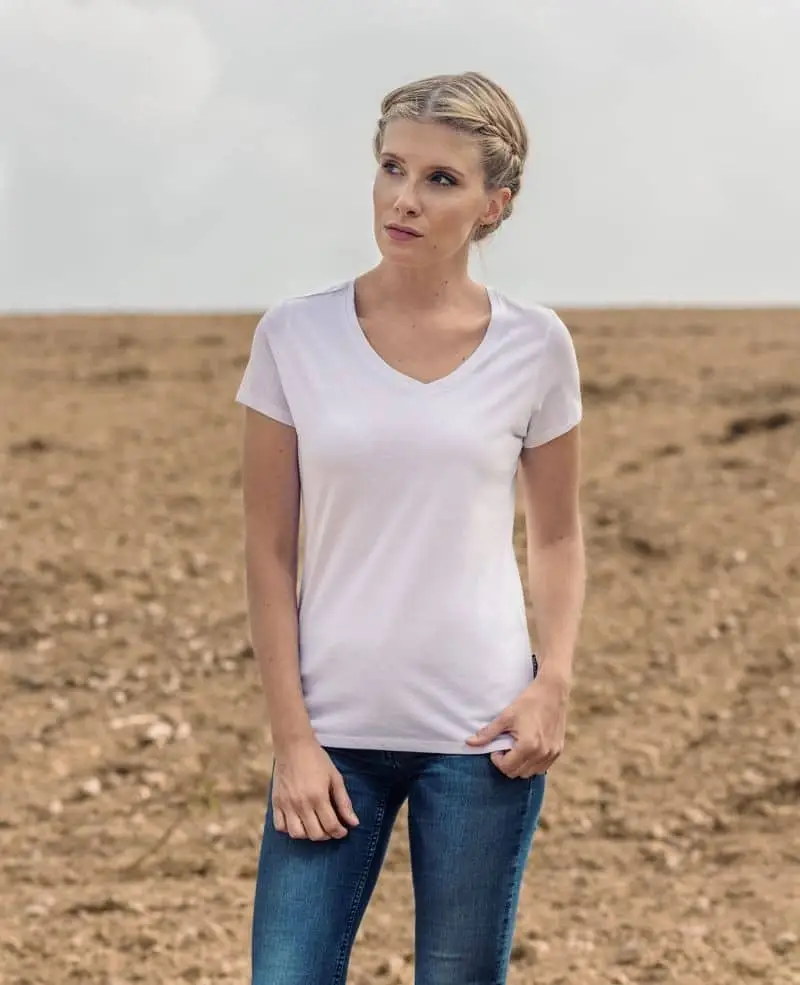 Dámske luxusné tričko s V výstrihom – sivý melír XS