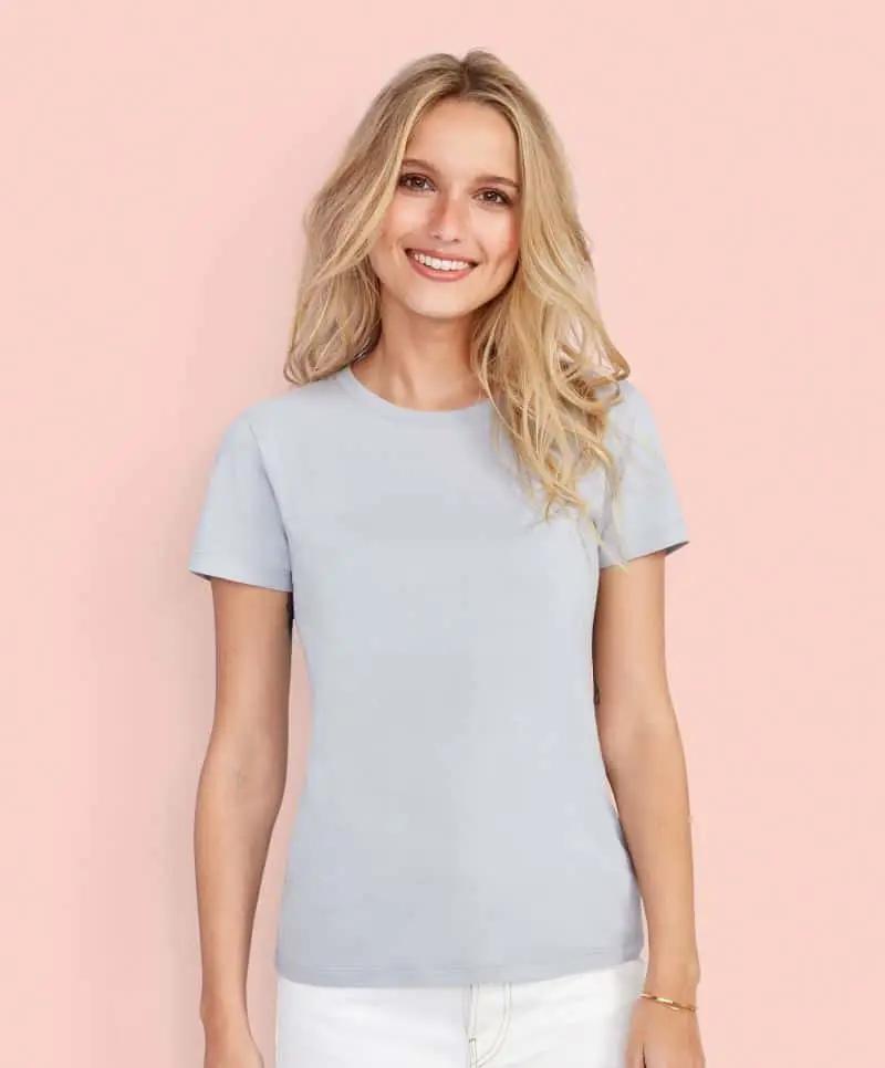 priliehavý strih, lem rebrový úplet, spevňujúca lemovka okolo krku, ženské krátke rukávy