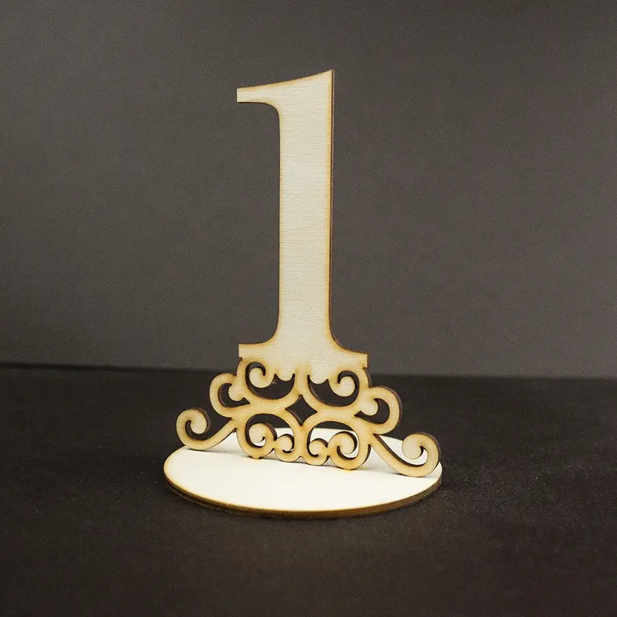 Elegantné drevené čísla na svadobné stoly s jemným ornamentálnym výrezom a praktickým stabilným stojanom. Všetky čísla sú v neutrálnej prírodnej farbe, takže sa hodia k akejkoľvek svadobnej výzdobe. Očíslované stoly uľahčia Vašim hosťom orientáciu v priestore a vyhnete sa chaosu so zasadacím poriadkom. Takto pekne každý nájde svoje miesto a bude vedieť, ktorý stôl je ten jeho. Drevené čísla sú vďaka decentnému prevedeniu aj pekným doplnkom svadobnej výzdoby.