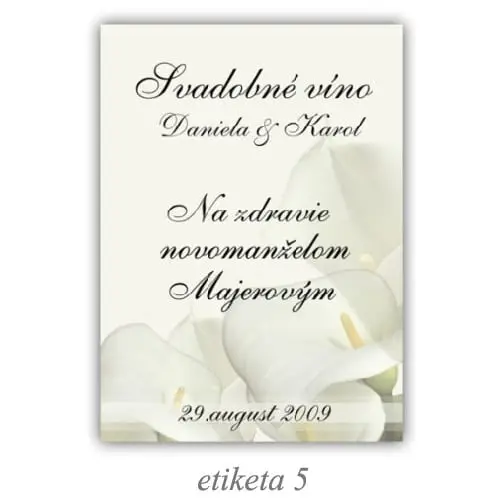 Nalej mi vína, Malvína! To na svadbe sedí, ale malo by to byť z naozaj reprezentatívnej fľaše. Vaše svadobné víno ozdobíme tými najkrajšími etiketami, pretože budú personalizované a Vaše!