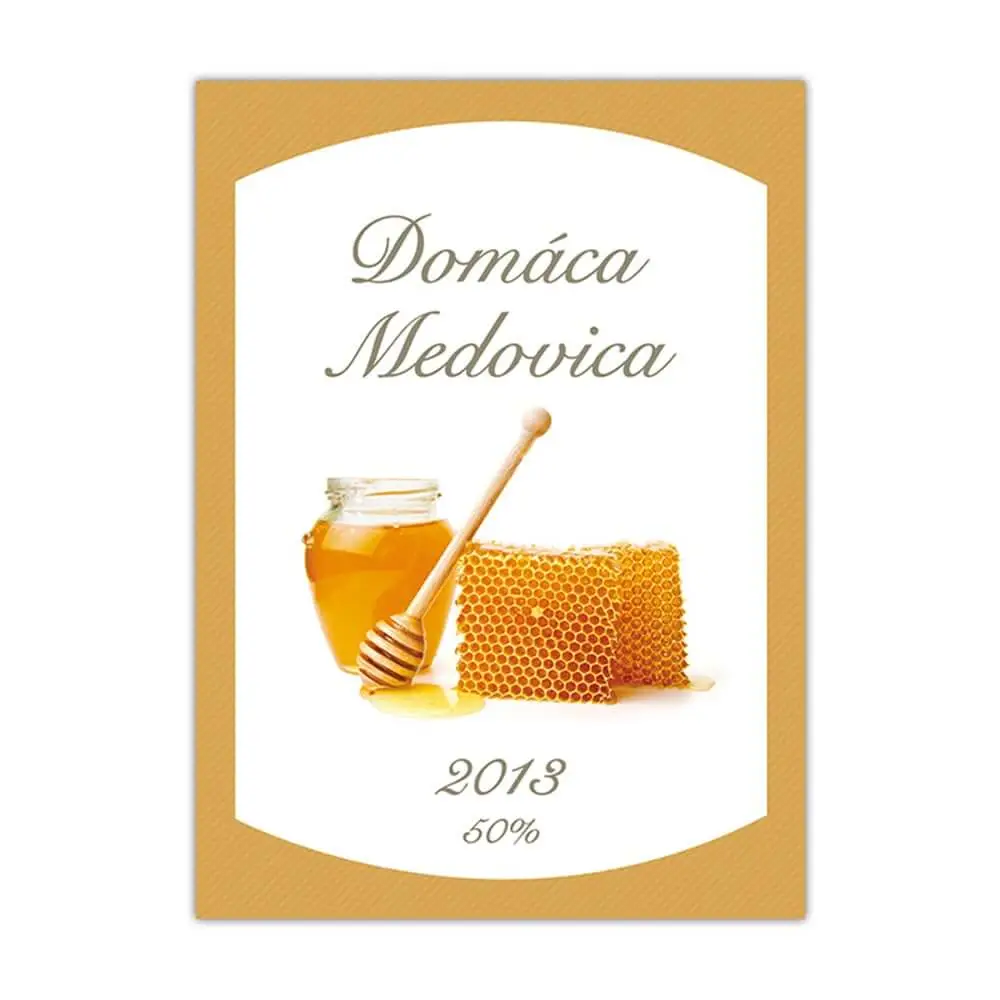 Etikety na alkohol – na domácu pálenku sú tlačené na odolný samolepiaci papier, alebo na vysoko odolnú samolepiacu fóliu vhodnú do exteriéru alebo do vedra s ľadom.