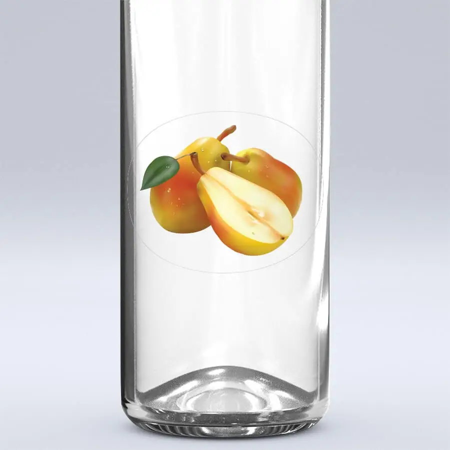 Etiketa na domáci alkohol (hruškovicu), hruškový džem, alebo lekvár. Etiketu si môžete vybrať v matnom, lesklom prevedení, alebo na priesvitnej (transparentnej) samolepiacej fólii. K dispozícii sú taktiež rôzne veľkosti.