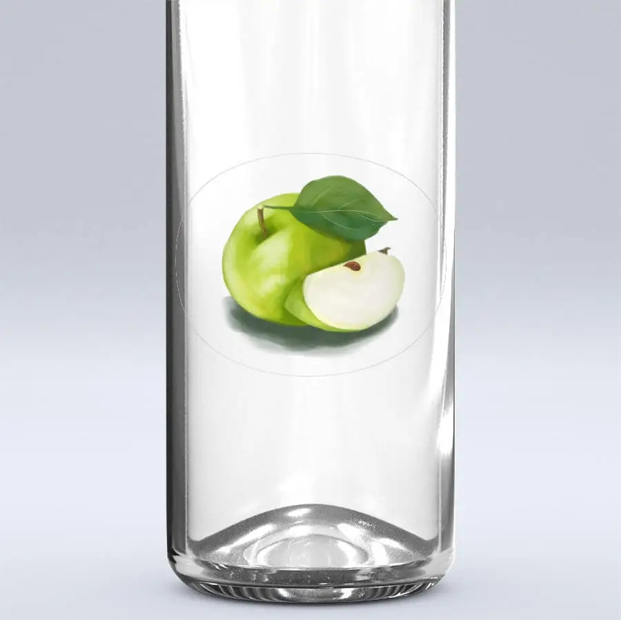 Etiketa na domáci alkohol (jablkovicu, kalvádos), džem, ovocnú výživu alebo lekvár. Etiketu si môžete vybrať v matnom, lesklom prevedení, alebo na priesvitnej (transparentnej) samolepiacej fólii. K dispozícii sú taktiež rôzne veľkosti.