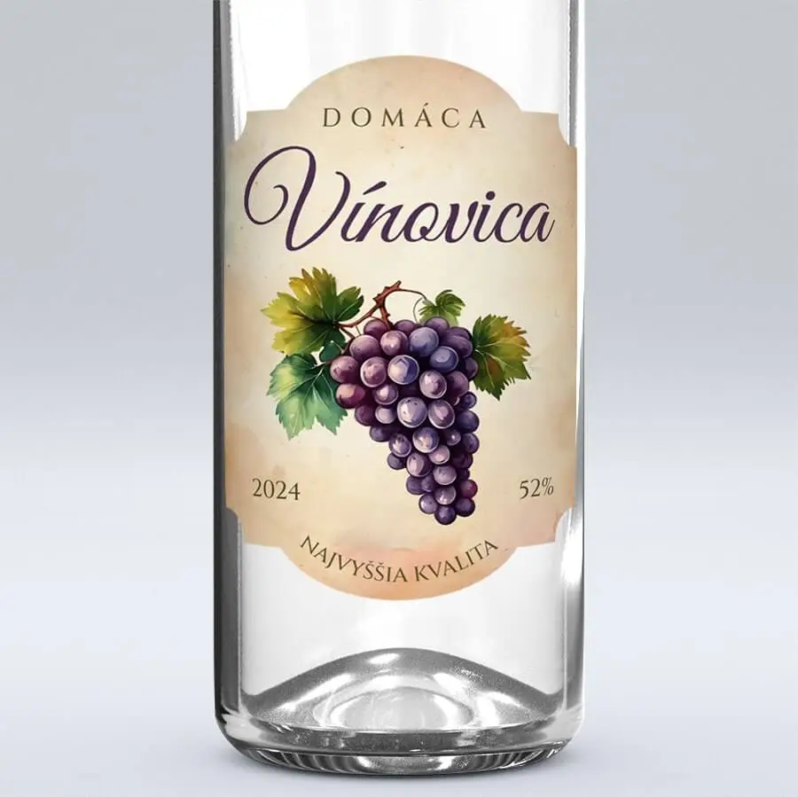 Vyrezávaná samolepiaca etiketa na domáci alkohol, ktorú tlačíme na kvalitné samolepiace fólie vhodné do vlhkých priestorov.