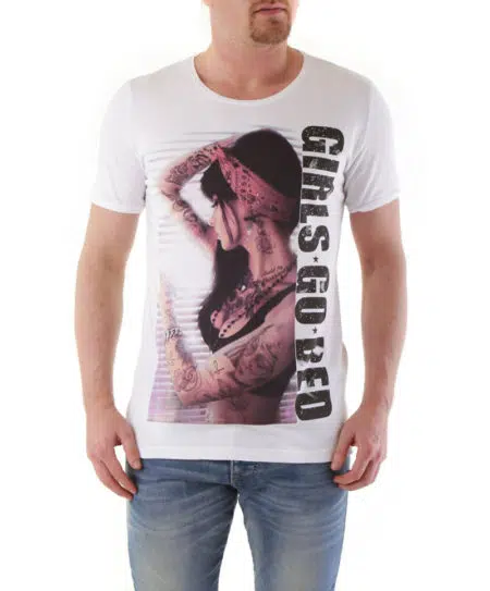 Pásnke tričko bielej farby s potlačou prestížnej značky Absolut Joy.