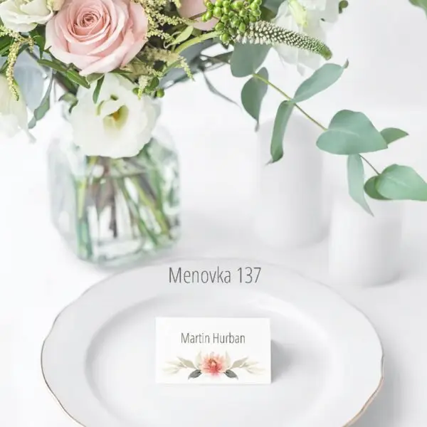 Nádherná, jednoduchá, ale vizuálne veľmi pôsobivá menovka. Menovky s týmto elegantným nežným motívom okamžite upútajú a hodia sa nielen pre moderné nevesty, ale aj pre všetky zmyselné, sebavedomé nevesty so zmyslom pre krásu a citom pre detail.