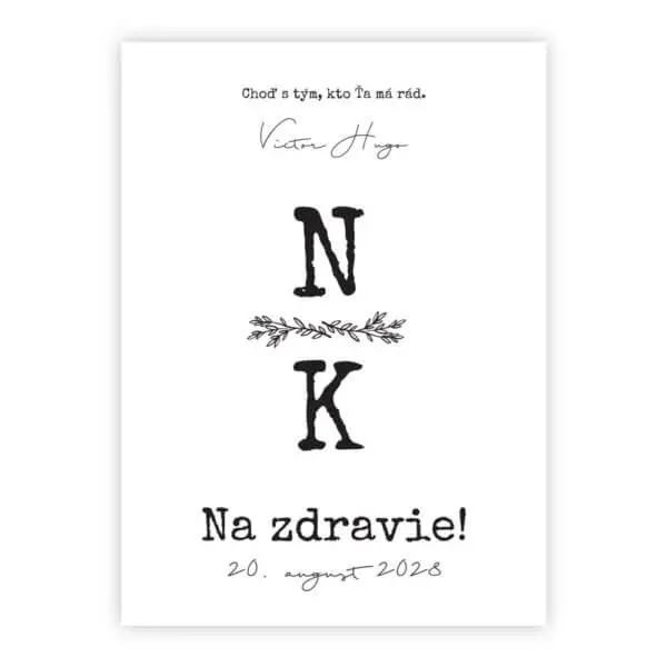 Využite možnosť zladiť menovky so svadobnými oznámeniami aj etiketami na fľaše a budete to mať na „kompletku“. Ak ste si z našich motívov nevybrali, vytlačíme Vám aj Váš vlastný návrh.