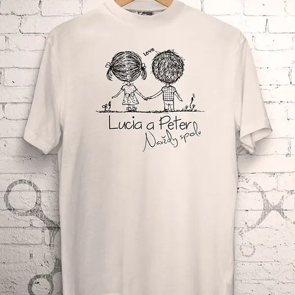 Veľké vyznanie lásky môžete nosiť priamo na hrudi! Ak to tak cítite, povedzte to. Bavlnené tričko s pekným dizajnom a ešte krajším textom. Dokonalý darček nielen pre novomanželov, ale aj pre manželov, ktorí to spolu ťahajú už dlhšie a stále sa ľúbia.