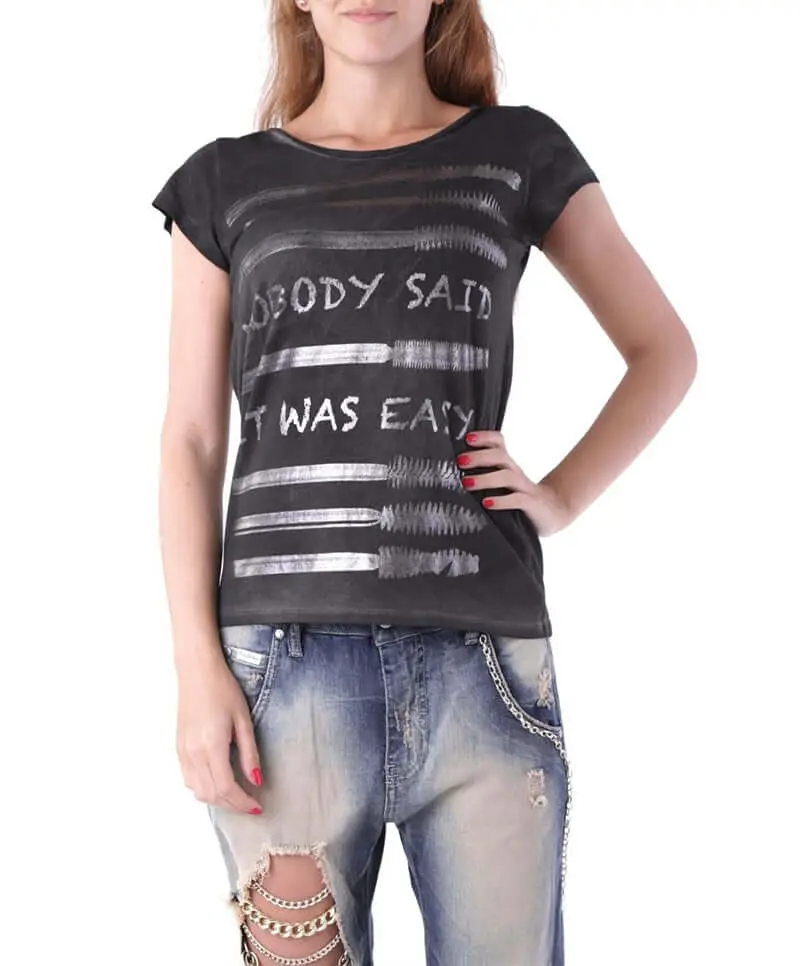 Nobody said it was easy… Nikto nepovedal, že to bolo ľahké! Vy však môžete vyzerať super štýlovo celkom bez námahy! Stačí si obliecť kvalitné tričko so zaujímavou potlačou a WOW efekt je zaručený. Motív strieborných riaseniek sa pekne vyníma na tmavosivom podklade.