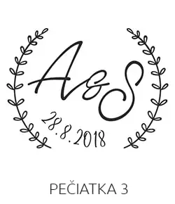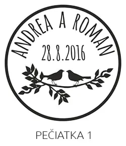 Vybrať si k nej môžete aj namáčaciu atramentovú podušku z našej ponuky. Svadobné pečiatky s Vašimi menami alebo iniciálkami a dátumom svadby môžete použiť aj na iné svadobné tlačoviny alebo produkty. Opečiatkujte si krabičky s koláčmi, etikety, obálky, oznámenia, menovky, papiere. Personalizované svadobné razítko dodá tlačovinám punc jedinečnosti.