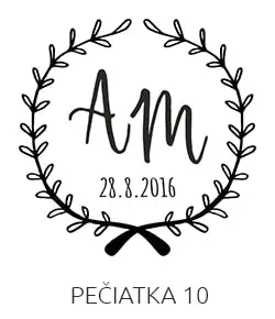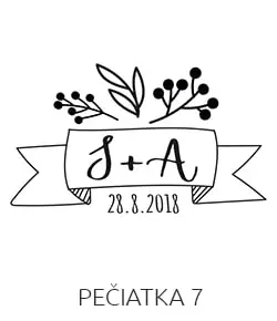 Máte pocit, že máte na Váš veľký deň všetko prichystané a premyslené? „Odfajknúť“ všetky položky zo zoznamu môžete naozaj až vtedy, keď tam bude aj Vaša jedinečná a osobná svadobná pečiatka. Vkusný vintage motív s vašimi iniciálkami, tým najdôležitejším dátumom a to všetko olemované drobnými lístočkami. Takouto personalizovanou pečiatkou môžete označiť všetko, čo súvisí s Vašou svadbou – obálky, pozvánky, menovky, fľaše či krabice s výslužkami. Pečiatka sa stane zároveň aj peknou pamiatkou na Váš veľký deň, ktorá Vám ostane a môžete ju ukázať aj Vašim deťom 🙂 Každá pečiatka má masívnu drevenú rúčku a gumovú raznicu.