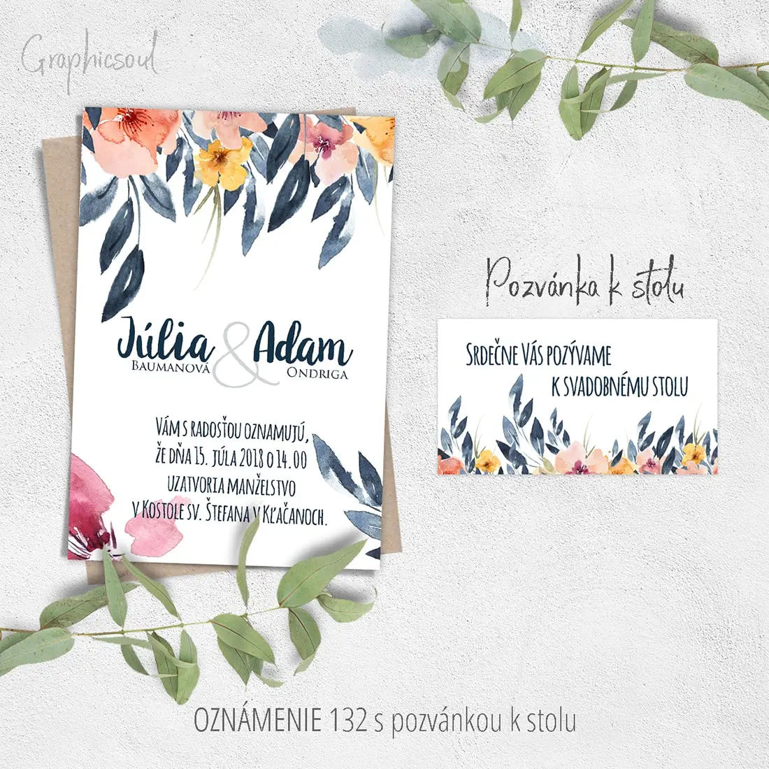 Moderná, precízne vypracovaná pozvánka k svadobnému stolu s pôsobivým kvetinový dizajnom. Nech tá krásna správa, ktorú si pozvaný vyberie z obálky, celá rozkvitne! Pozývací text harmonicky dopĺňa záplava pastelových kvetov. Cítite tú vôňu? Hravý, optimistický dizajn pre veselú svadbu a šťastných novomanželov presne, ako to má byť.