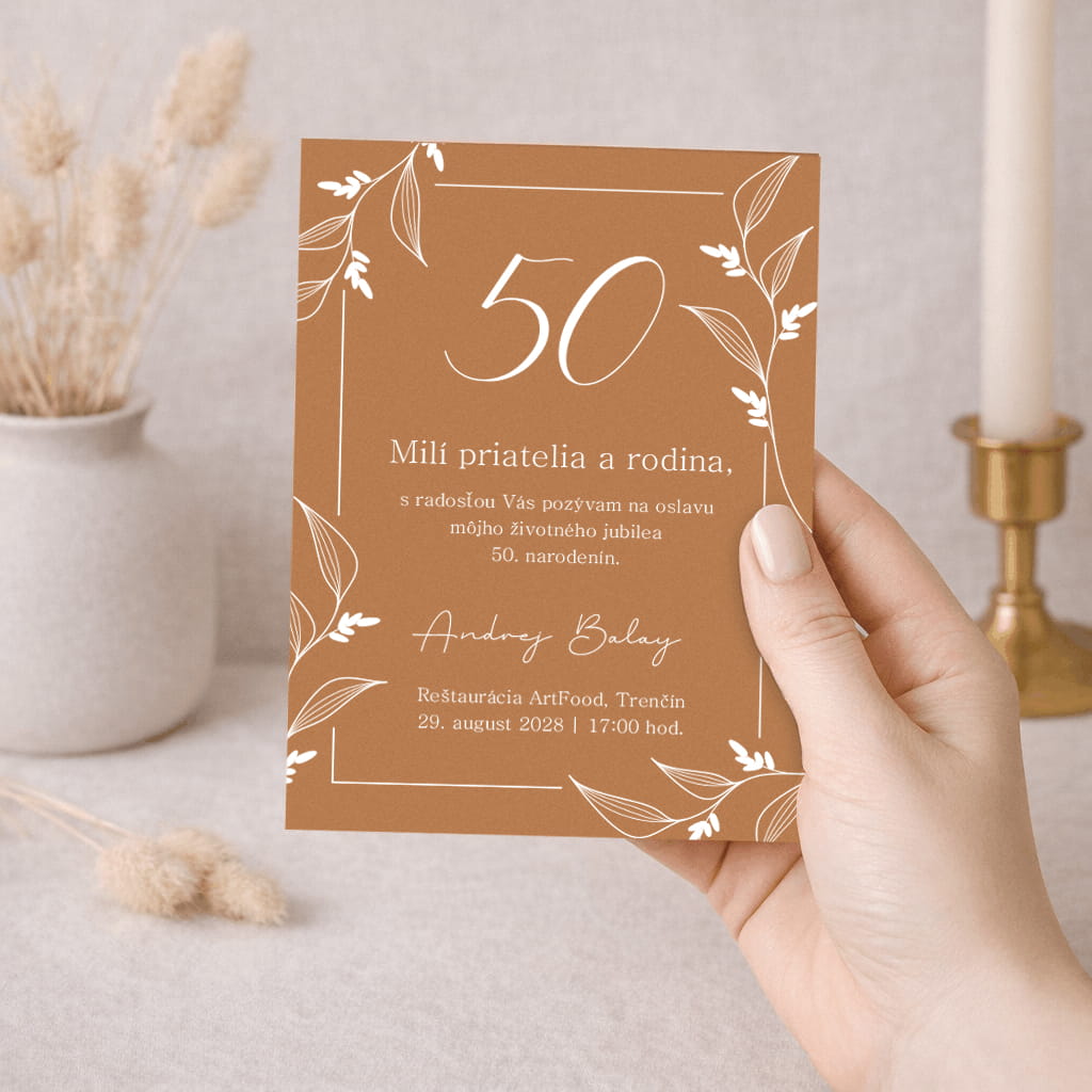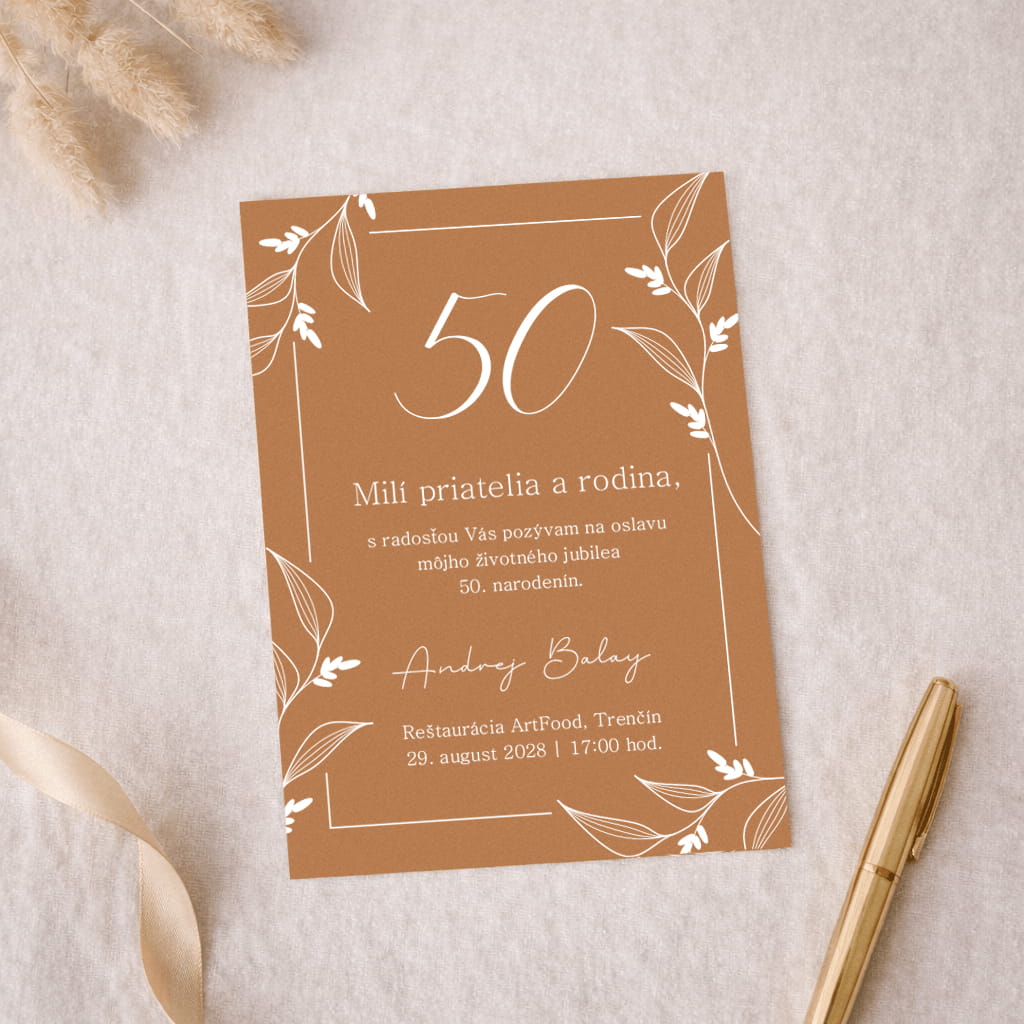 Ak hľadáte pozvánku na jubileum, ktorá je štýlová, prírodná a zároveň výnimočná, táto kraftová pozvánka splní všetky vaše očakávania.