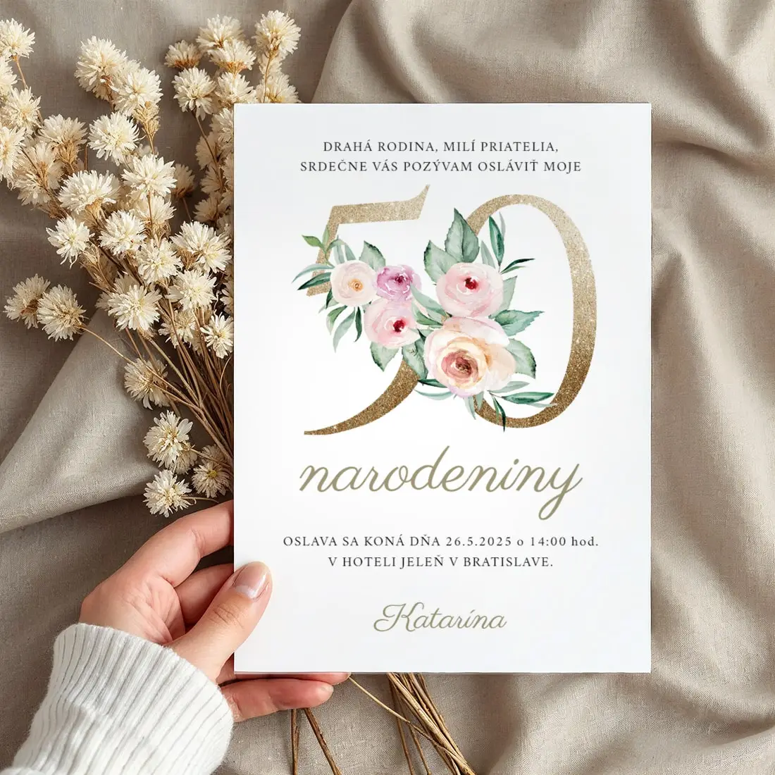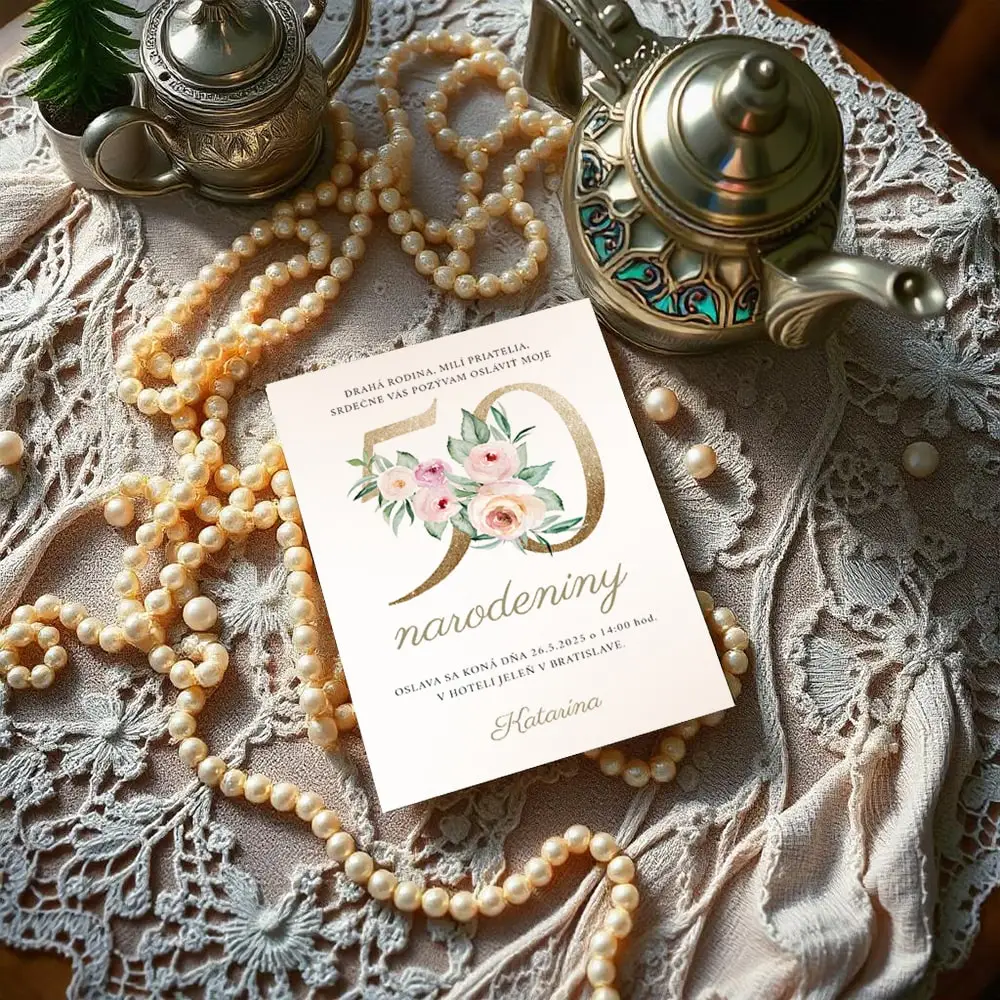 Oslávte svoje významné životné jubileum s našou elegantnou a štýlovou pozvánkou! Táto exkluzívna pozvánka, inšpirovaná jemnou vintage estetikou, je dokonalým spôsobom, ako pozvať svojich blízkych na nezabudnuteľnú oslavu.
