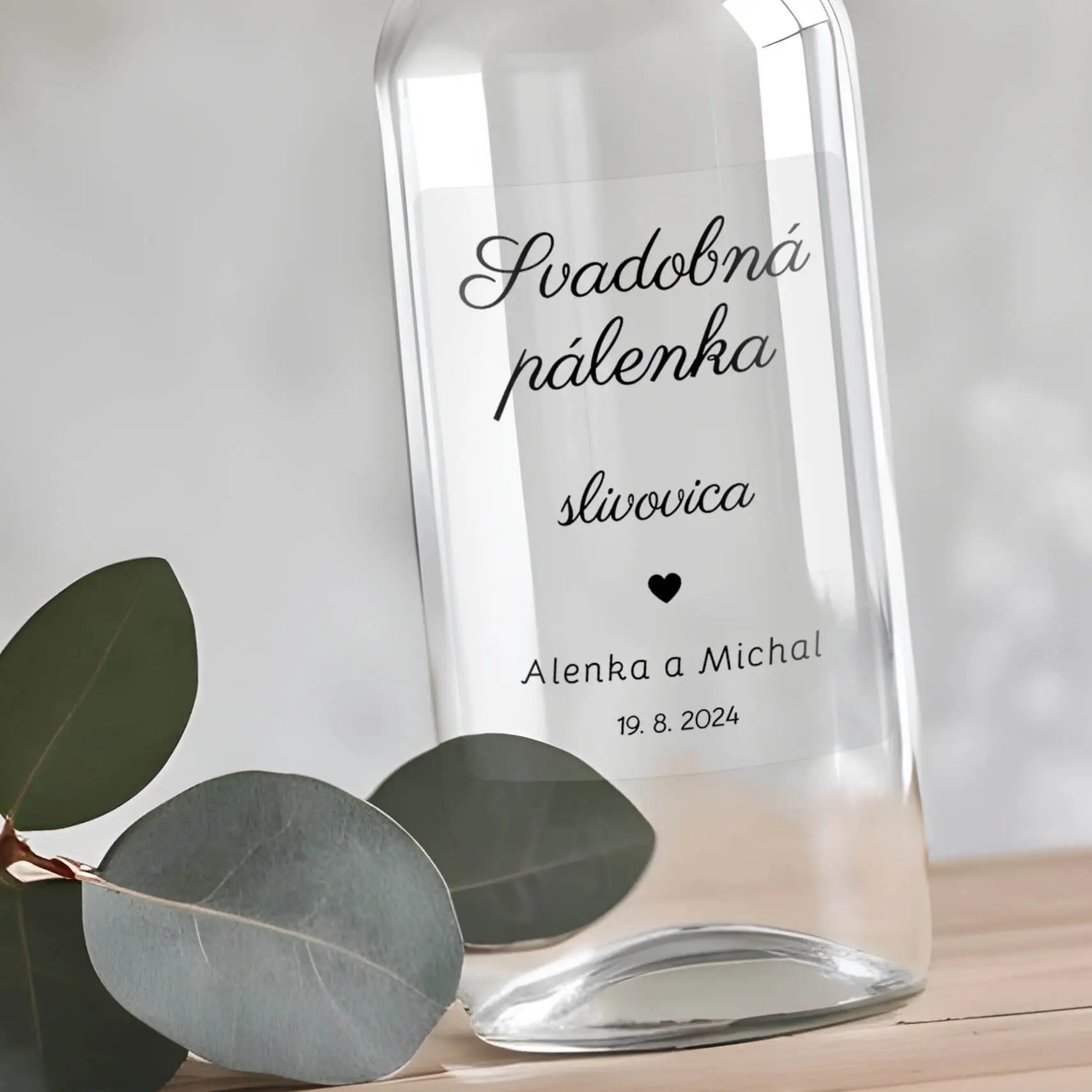 Jednoduchá priesvitná etiketa na alkohol, alebo na svadobnú pálenku TR_1