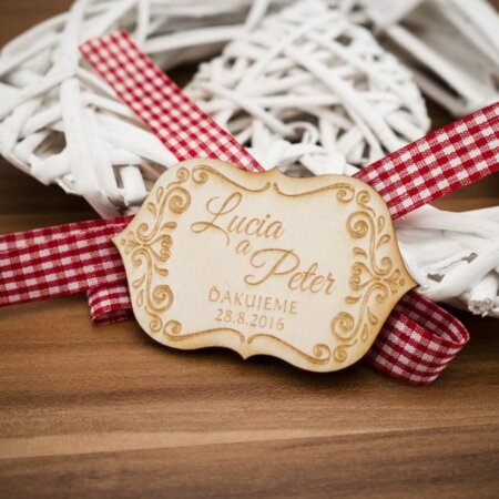 Drevená svadobná magnetka s priemerom 6cm a hrúbkou 3mm.