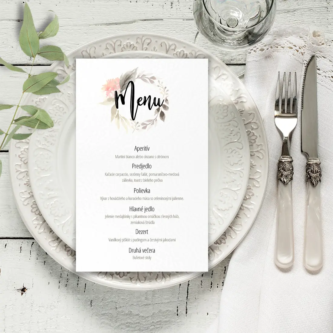 Minimálny odber je 8ks | K svadobnej menu karte sú zladené aj ostatné svadobné tlačoviny – viď nižšie súvisiace produkty.