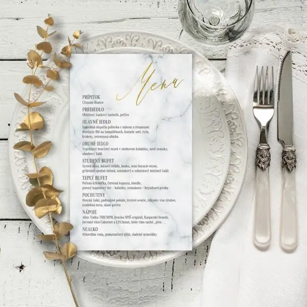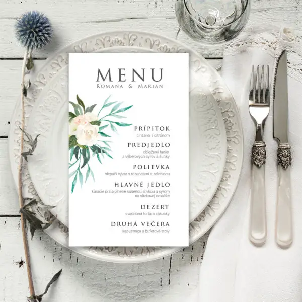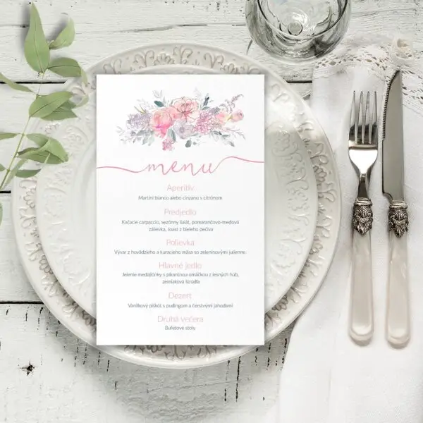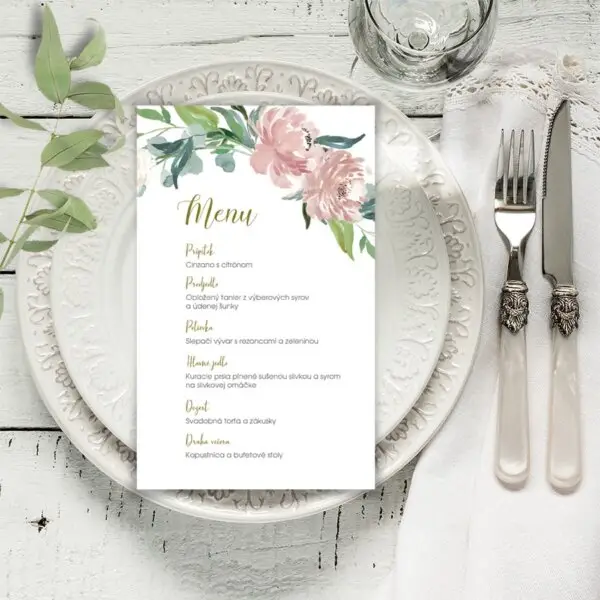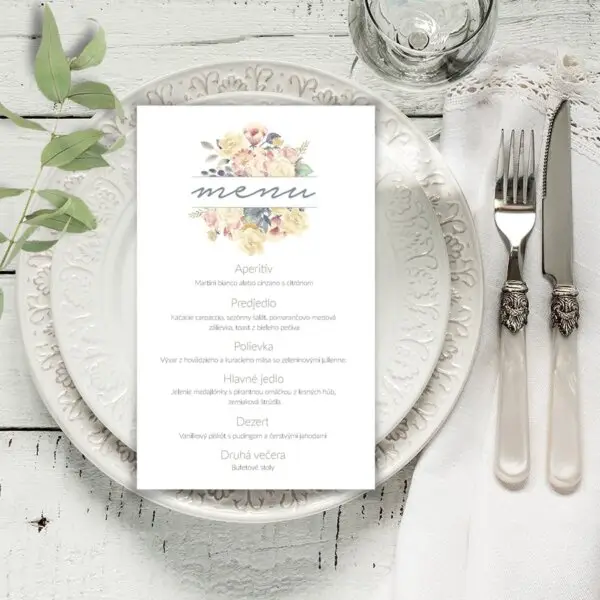 Minimálny odber je 8ks | K svadobnej menu karte sú zladené aj ostatné svadobné tlačoviny – viď nižšie súvisiace produkty.