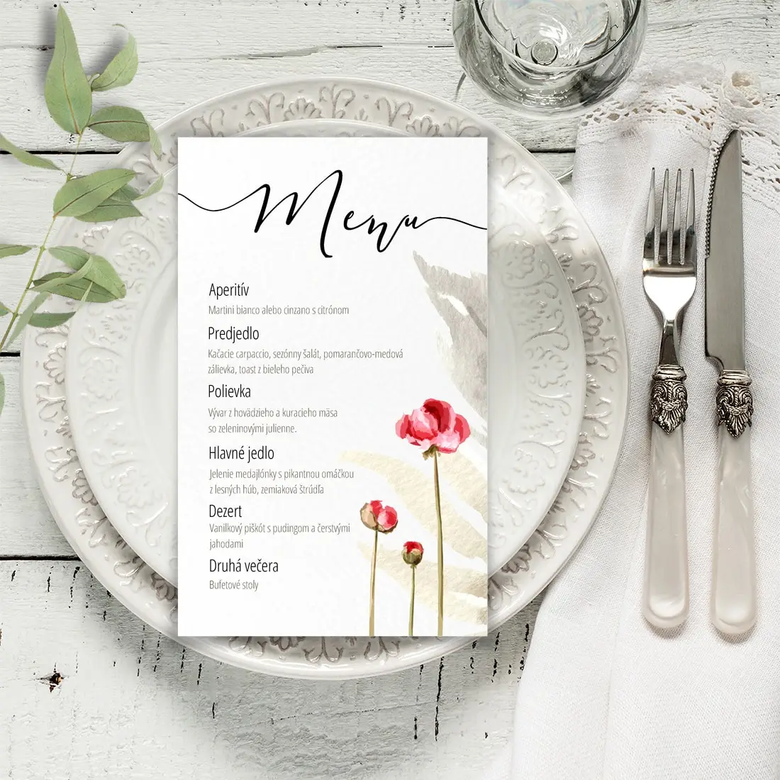 Minimálny odber je 8ks | K svadobnej menu karte sú zladené aj ostatné svadobné tlačoviny – viď nižšie súvisiace produkty.