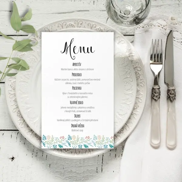 Minimálny odber je 8ks | K svadobnej menu karte sú zladené aj ostatné svadobné tlačoviny – viď nižšie súvisiace produkty.